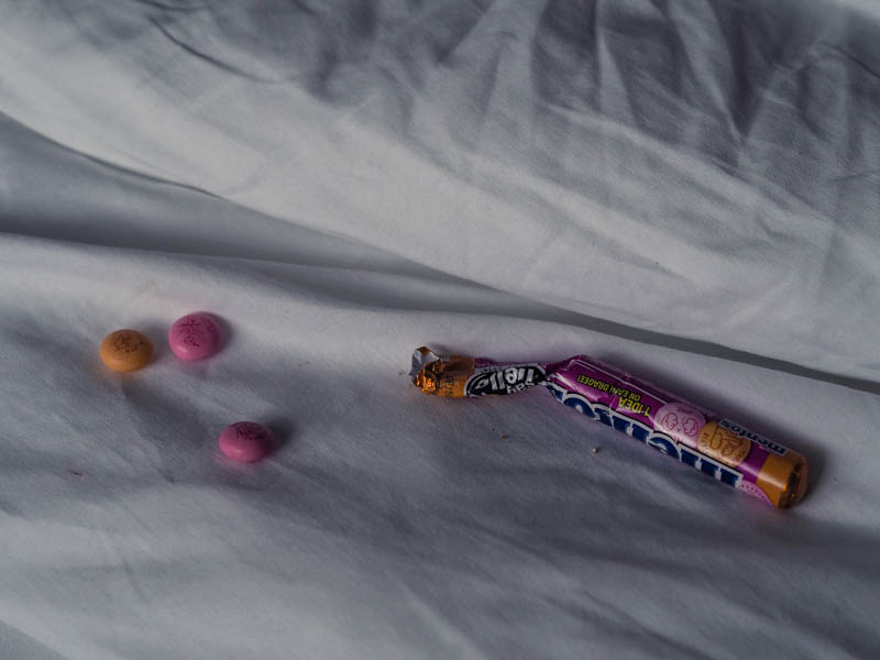 Dopoledne jsme nic moc nedělali, tak jsem v kabelce našla zahrabané nové Mentosky a zábava byla na světě alespoň na chvíli (dokud nedošly bombóny 😀 ).