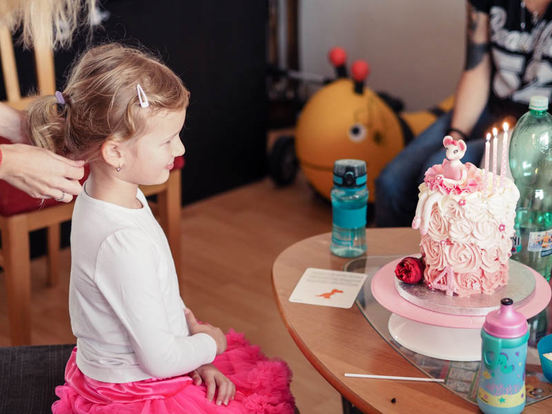 Tento rok jsme prvně řešily oslavu s Laurinkou spolu. Já se zeptala, co by chtěla a ona mi sladce odvětila, že chce párty jako Angelina ballerina (kdo nezná, je to kreslená pohádka o myšce, která tančí balet).