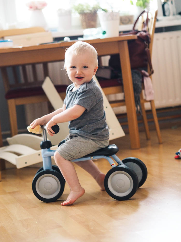 Tentokrát jsme byli moudřejší a Filípkovi k prvním narozeninám rovnou koupili Pukylino (děkuji za radu sousedce!). Je poměrně levné, po složení velmi hbité. Tím, že je velmi nízko, roční děti nemají problém na něj vylézt samotné (u předpokladu, že stojí a třeba už obcházejí nábytek). Malý na tom drandí každý den. Prozatím doma, dokud není 100% chodící jedinec 🙂 Moc ještě neumí řídit a většinou jede pozadu, ale účel splnilo 😀