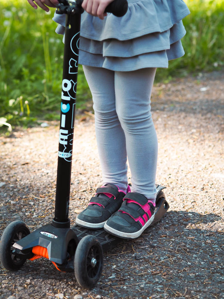 Když jsme byli před rokem u mamky na prázdninách, nějak se stalo, že Laurinka dostala koloběžku. Neplánovaně. Mají tam nejlepší obchod s hračkami, jaký jsem kdy viděla (Vnímavé hračky) a přesně tam nás upoutala skvělá koloběžka značky Micro (například ZDE). V čem je tak perfektní? Má větši stabilitu. Což je u malých dětí velké plus, zvláště, když se začnou učit. K tomu funguje na velmi jednoduchém mechanizmu, kdy ke změně směru, zahnutí, stačí naklonit nohu stojící na koloběžce- trochu mi to připomíná lyže 🙂