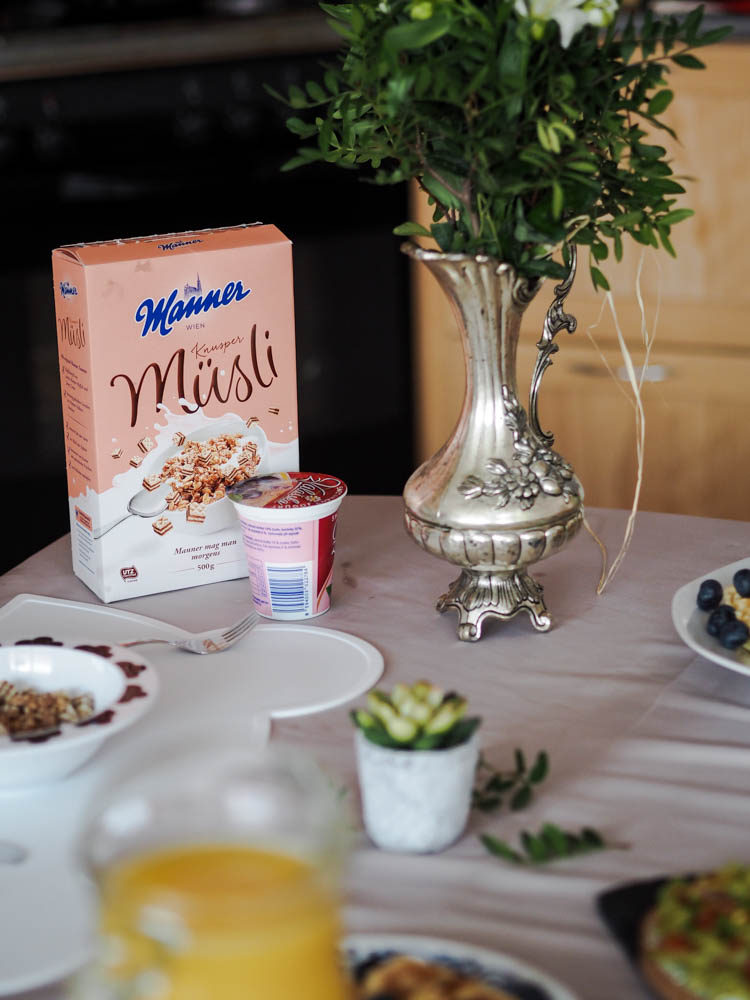 Nejsem vyhraněným milovníkem té samé snídaně každý den. Potřebuji mít pořád něco jiného. Někdy sladké, někdy slané, někdy obojí. A přesně to vždy najdete u nás na stole. Vajíčka, čerstvé rohlíky z pekárny, máslo, různé druhy salámů a sýrů. Pak také čerstvé koláče, lívance, někdy ovesnou kaši, jindy wafle anebo bábovku. Milujeme avokádo, takže na tabuli nesmí chybět. Také ovoce, jogurty a musli. Teď zrovna zkoušíme nové od Manneru- popravdě DOTEĎ jsem je neobjevila v žádném obchodě, celkem by mě zajímala cena… Nicméně pokud jste fanouškem jejich oplatků, rozhodně vyzkoušejte i snídaňové musli, kde jsou zamíchané také 🙂 Podle testů mají o 30% méně cukru než všechny ostatní musli na trhu. Velké plus za to, že jsou i pro Vegany. Mínus dávám za to, že stejně obsahují palmový olej- a v dnešní době, kdy se tento druh oleje řeší pomalu v každé diskuzi, by ho mohli nahradit něčím zdravějším…