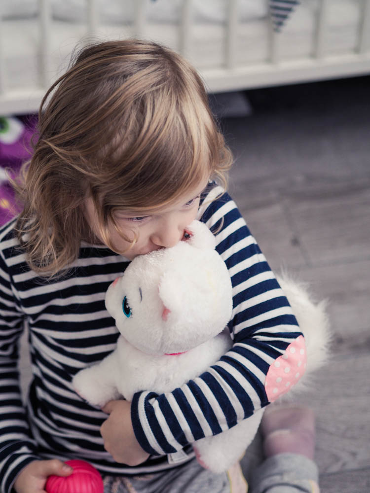 Čekala jsem, že podobný osud potká naši kočičku Biancu, kterou Laurinka dostala taky k narozeninám. Jenomže ona je tak roztomilá, že mi snad ani nevadí to věčné mňoukání, hlavně, že si s ní děti hrají. Je heboučká, takže si jí Laura kolikrát bere s sebou i do postele.