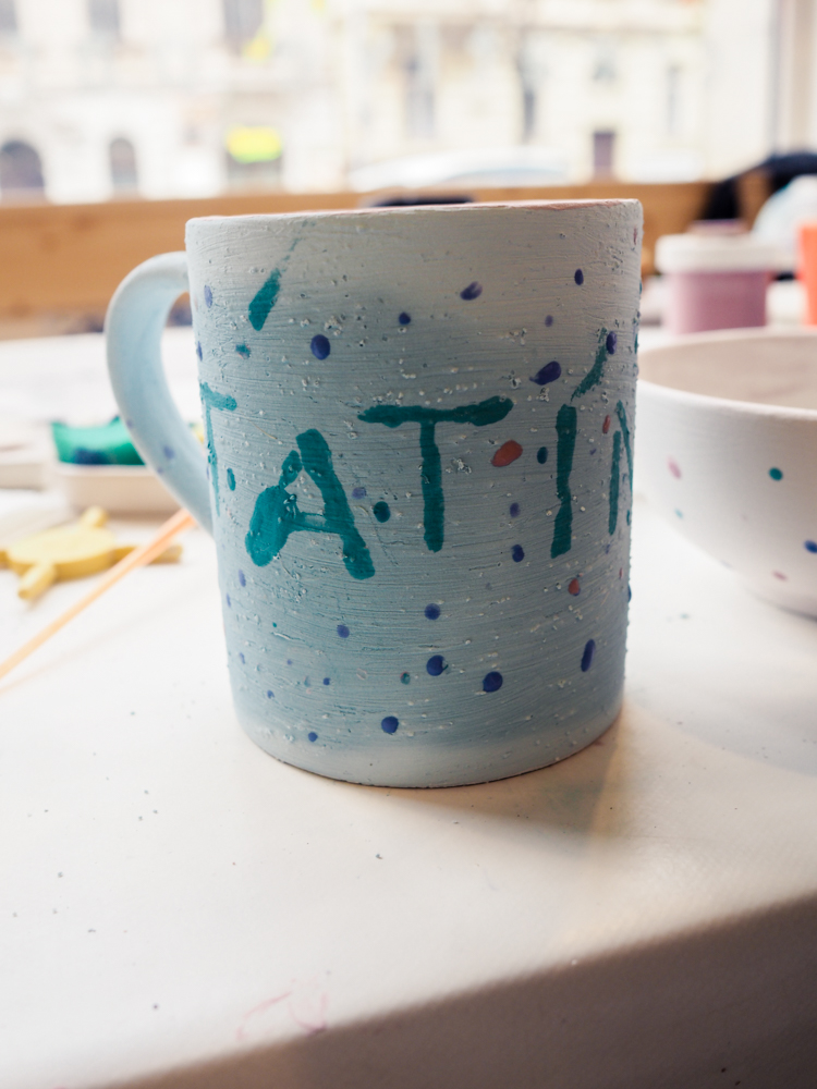 Takže vám všem doporučuji- pokud se budete nudit, určitě do kavárny zajděte. Bylo to moc zábavné dopoledne (mají i dětský koutek pro ty nejmenší! I když ho dost okupovala Laura…) a neuvěřitelně dobře se koukalo na jiné rodiny s dětmi, které seděly za jedním stolem a společně vytvářeli krásné nádobí. A pokud si nebudete vědět rady, nic se neděje. K dispozici jsou lektoři, kteří vám vše vysvětlí a ukážou. Nebo dokonce pořádají i kurzy malování 🙂 Výsledek pak stojí za to.